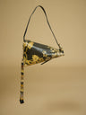 Description: A unique handbag with its distinct shape. Aasir comes with an adjustable strap and a dual compartment with zip closures. Not only is this bag stylish with its modern silhouette, it comes in bold prints and is bound to draw the right kind of attention. It comes with an extendable strap.