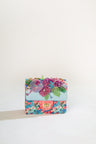 A stunning hand bag created in our abstract floral prints with a turn lock closure and three dimensional embroidered organza flowers. A perfect addition to your collection of your accessories.