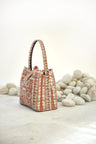 It is spacious, classy and exuberant at the same time. Designed with Bandhej print intercepted with cowrie shells, its print is highlighted with delicate pearl work.