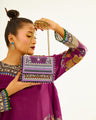 Description: A sling bag, created with Japanese elements and autumn winter colours. It's print is further highlighted with some delicate hand work.