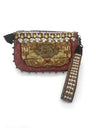 Description: A circular printed zipper clutch. Highlighted with detailed zardosi work and assorted sequins and beads.