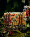 Description: A sling bag with a turn lock, created with some bold geometric tile prints and summer florals. Its print is further highlighted with elegant bead work.